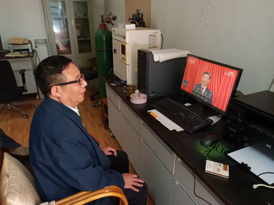 研究生党支部员工党员周涛表示,“聆听了习近平总书记的报告后,我的内心充满了责任、勇气和信心。作为一名研究生、一名青年党员,我们应以行动证明自己的决心,紧跟党的步伐,不断强化自身专业能力,踏踏实实地提升自己的科学素养,让自己的青春在全面建设社会主义现代化国家的火热实践中绽放绚丽之花。”