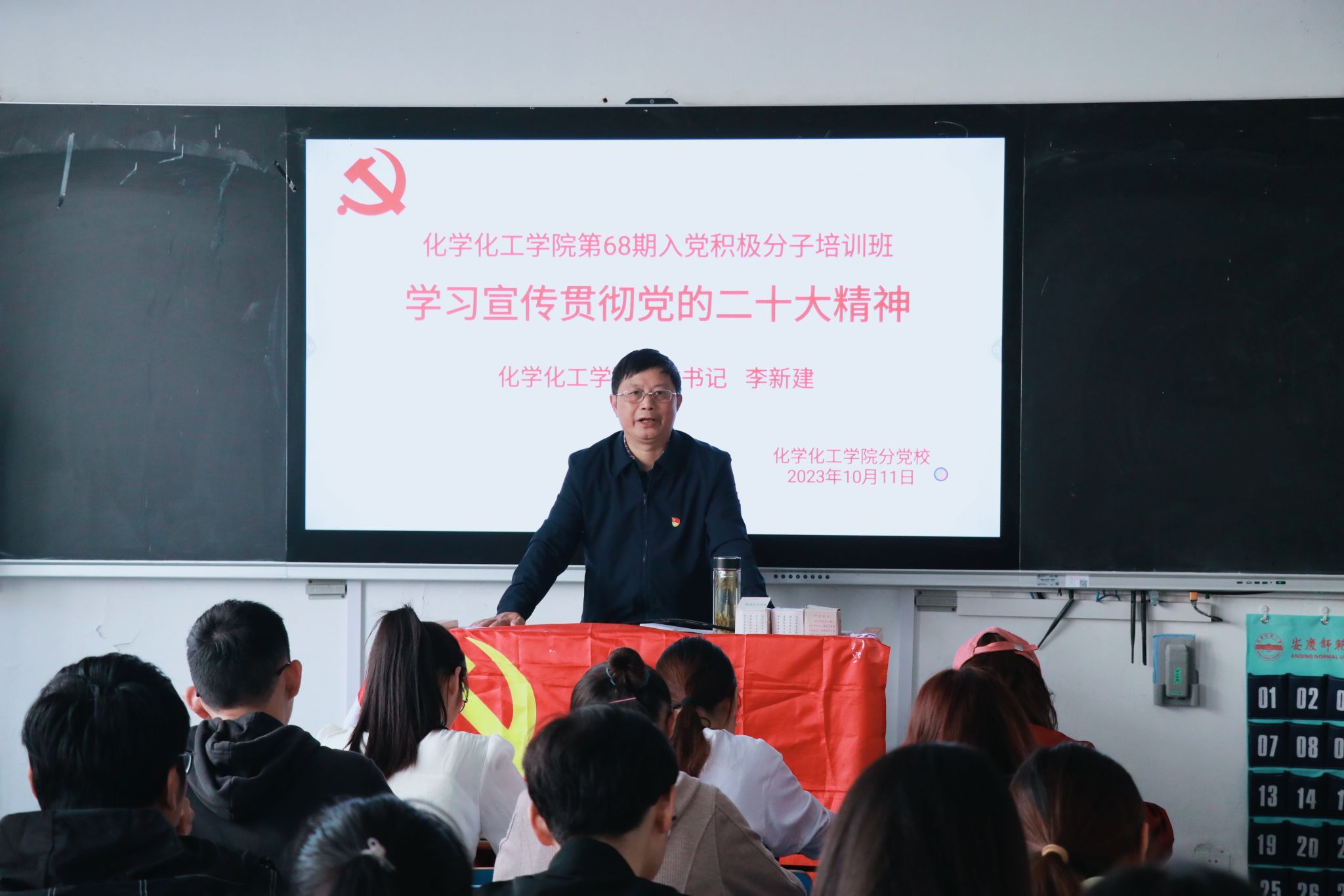 李新建作开班动员讲话。他对参训学员提出三点要求,一要加强理论武装,提高政治站位;二要坚定理想信念,端正入党动机;三要主动担当作为,发挥表率作用。他指出,同学们应当珍惜这个来之不易的机会,努力学习党的理论知识,坚持理论联系实际,切实做到知行合一、学以致用,在日常生活中严格要求自己,做学习的模范,做守纪的模范,做优良作风的模范。