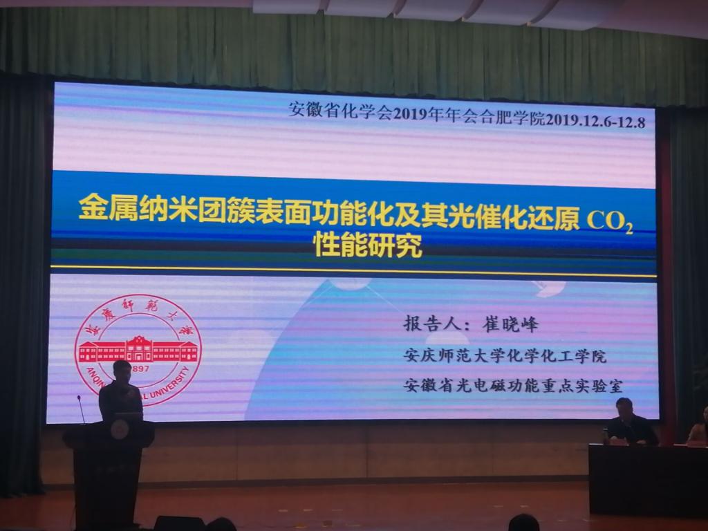 12月6日至12月8日,安徽省化学学会2019年学术年会暨第十九届化学教学改革研讨会在合肥公司召开,sunbet崔晓峰副教授受邀参加了此次会议,并作题为《金属纳米团簇表面功能化及其光催化还原 CO2 性能研究》学术报告。