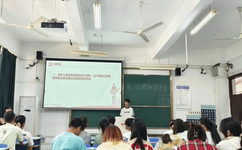 “根据民法典规定,动物在遗弃、逃逸期间造成他人损害的,由谁承担侵权责任?请抢答……”5月29日下午,C101教室内气氛热烈,掌声阵阵,sunbet团委在此举办2024年《中华人民共和国民法典》知识竞赛。