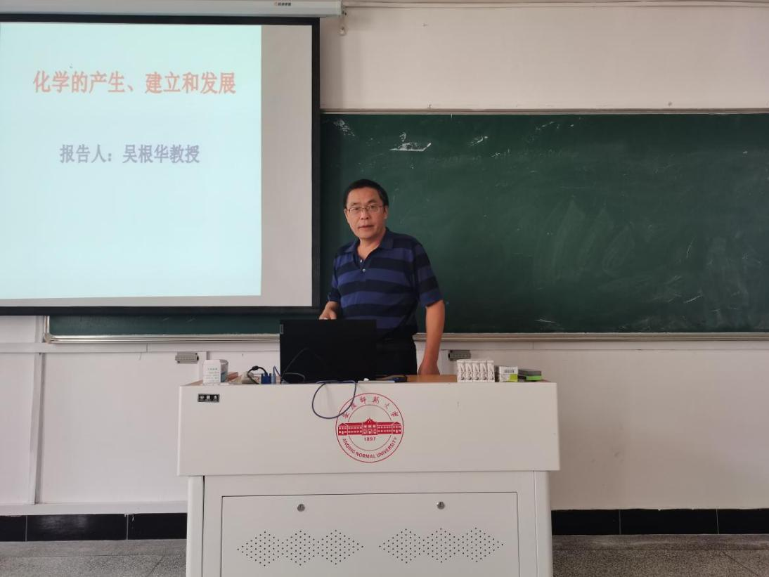 2022年9月26日上午,sunbet吴根华教授在龙山校区A楼412教室作了题为“化学的产生、建立和发展”的学术报告。sunbet部分本科生聆听报告。