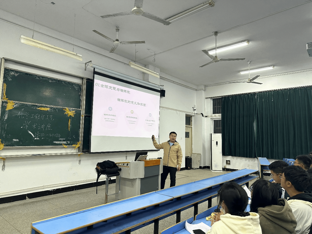 近日,sunbet蔡振宇博士在龙山校区C108教室作了题为“碳中和理念普及——减缓全球变暖的有效手段”的学术报告。公司化学工程与工艺专业80多位同学参加了此次报告会。