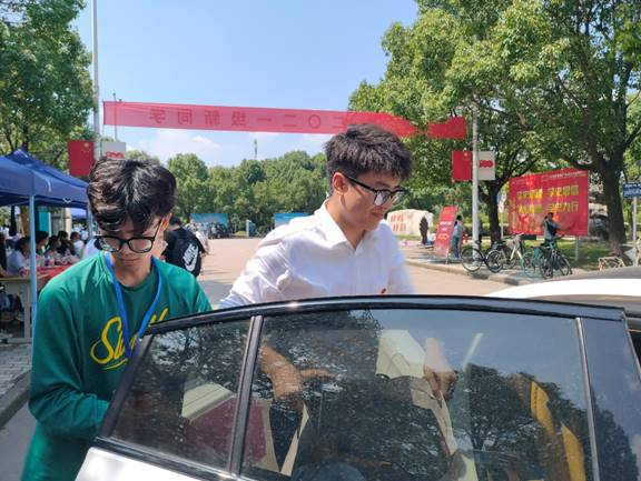 “第一次离家住校,爸妈很担心,替我准备了很多行李,装了满满一车,我一直很担心爸妈不能进入公司帮我,这么多行李我要怎么运送,多亏了公司的爱心车队,而且很凑巧的是接送我的老师这学期还会给我们班上课,感觉好幸运好温暖!”化学专业2021级(1)张梦颖说。