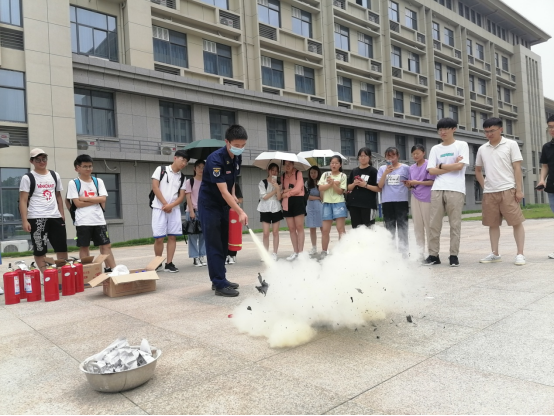 讲座中,李让指导员以图文并茂的形式和生动鲜活的案例,为参加培训人员详细讲解了基本消防安全制度、相关法律法规,帮助大家形成基本消防观念;重点讲解了实验室和日常生活中所存在的安全隐患,火灾的形成与发展、蔓延,以及发生火灾后如何报警、初期火灾扑救、火灾来临时如何疏散及逃生自救等知识。讲座培训后在化学楼右侧广场举行了现场的灭火演习。在灭火演习现场,李让指导员就灭火器如何正确使用进行了示范,公司师生亲自进行了演练,体验了现场灭火的过程,做到了沉着冷静的面对突发状况,成功快速地灭火。