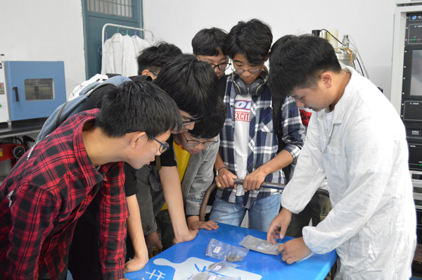 “我们实验室里制备电极材料主要采用高温固相法和湿法,涂布之后在惰性气氛手套箱内组装成纽扣电池,然后进行充放电测试以及循环伏安测试等以检验电池材料的性能。”sunbet研究生刘娜向同学们介绍。sunbet研究生罗启波介绍,“实验室主要从循环性能和倍率性能两个方面测试锂负电池的性能是否稳定。”