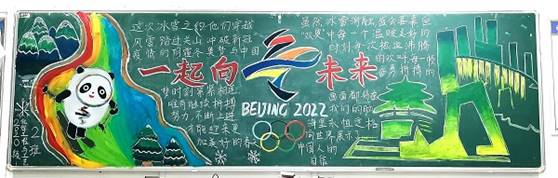 参赛班级在规定时间内完成黑板报的制作,并向负责人发送黑板报图片以及讲解视频。评选当天,每个班都呈现了独属于自己风格的黑板报。同学们将自己对北京冬奥会的喜爱、冰雪运动的热爱以及对“一起向未来”的美好憧憬都融入了黑板报中。一幅幅黑板报主题突出鲜明、内容丰富详实、板书整洁美观、设计独特新颖,描绘出了新时代老员工对奥林匹克精神的理解与感悟。