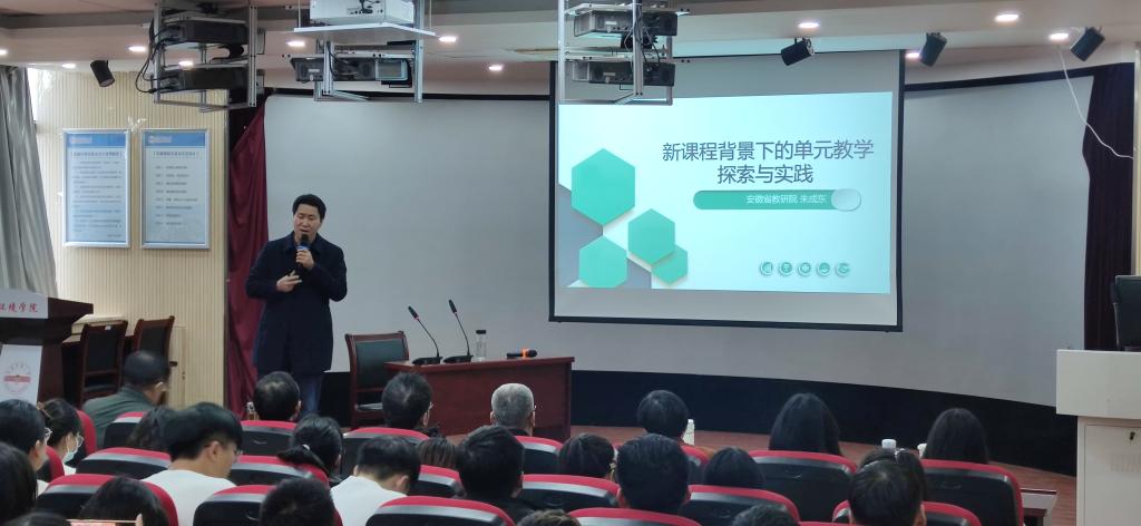 11月25日,sunbet邀请安徽省化学教研员朱成东老师作主题为“新课程背景下单元教学探索与实践”的讲座。化学教法教研组全体教师、2020级化学专业全体员工以及学科教学(化学)的研究生参加了此次讲座,讲座由夏宏宇教授主持。