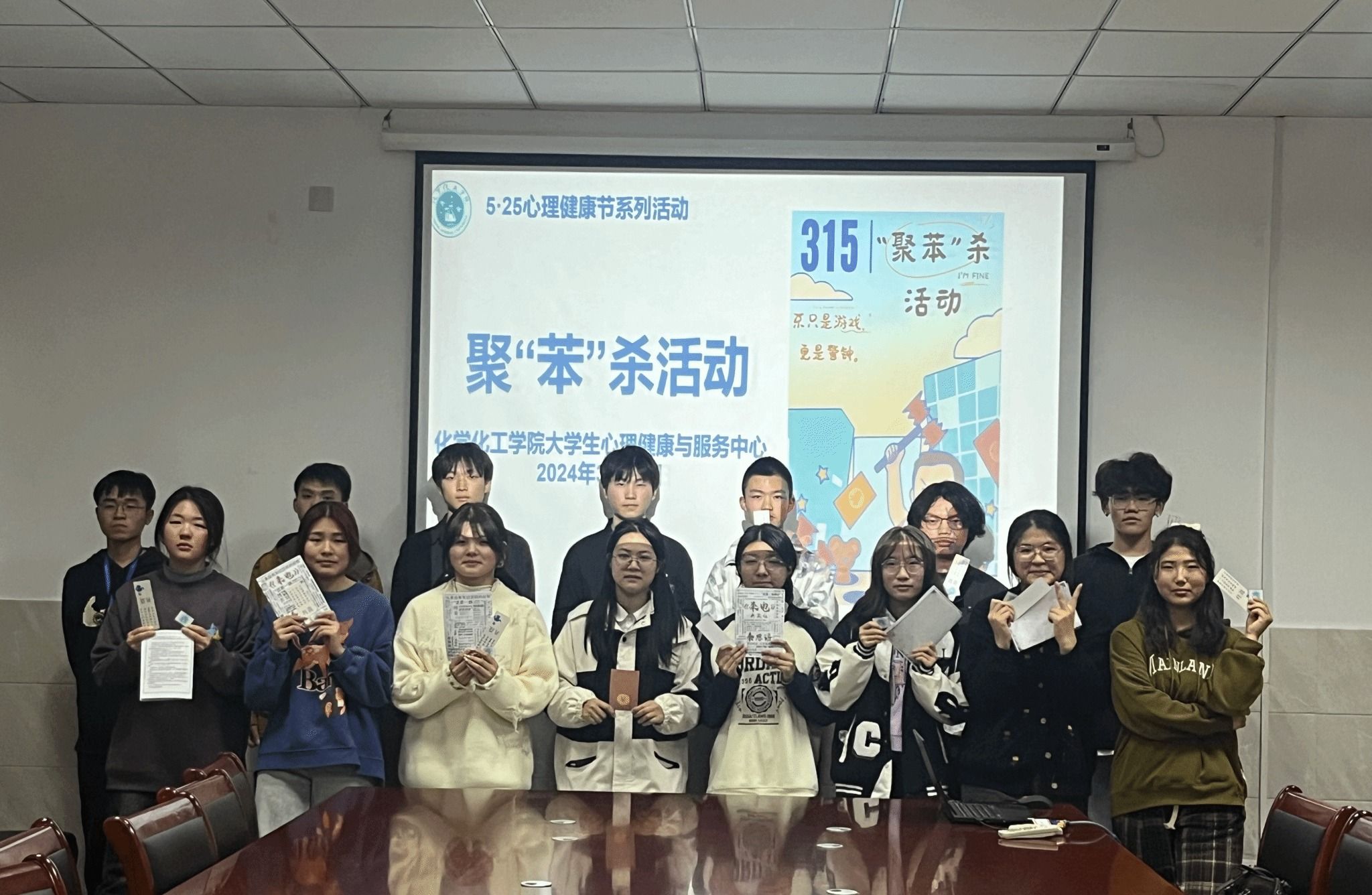 3月15号晚,sunbet老员工心理健康与服务中心开展聚“苯”杀活动,通过沉浸式体验的方式,让员工在游戏中释放压力,学习反诈知识,增强自我保护能力。